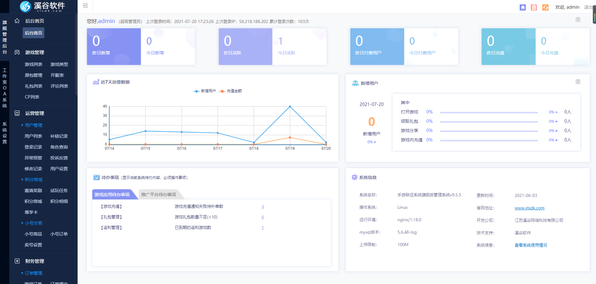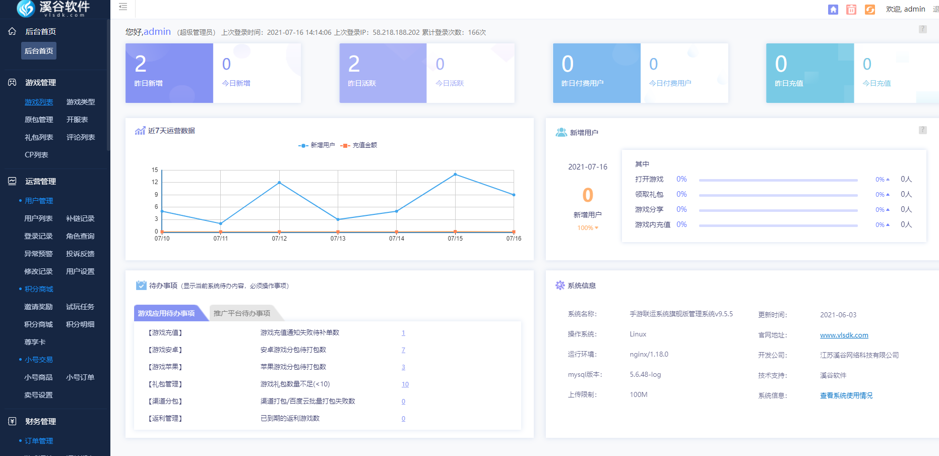 H5联运系统是指H5游戏运营所需要的包含登录充值等功能的平台,有了这个,才能将更多好游戏展示给玩家 。不过要想运营好H5游戏,光有登录充值功能还是不够的,你还得需要管理用户,数据分析等后台,溪谷h5联运系统就是一款相当不错的运营平台了,下面可以详细了解一下溪谷h5联运系统拥有哪些功能哦。