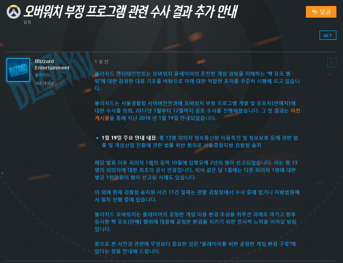网络游戏中的开挂作弊问题经常对玩家的游戏体验造成影响。对此游戏厂商进行各种方式的打压,并得到了一些国家政府的帮助。日前韩国就有多名《守望先锋》作弊玩家被逮捕,他们或将面临重罚。